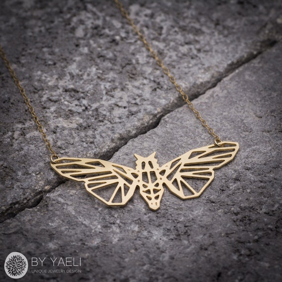 Animal jewelry, Moth necklace, gold geometric butterfly necklace by ByYaeli syndicated from https://www.etsy.com/shop/byyaeli/