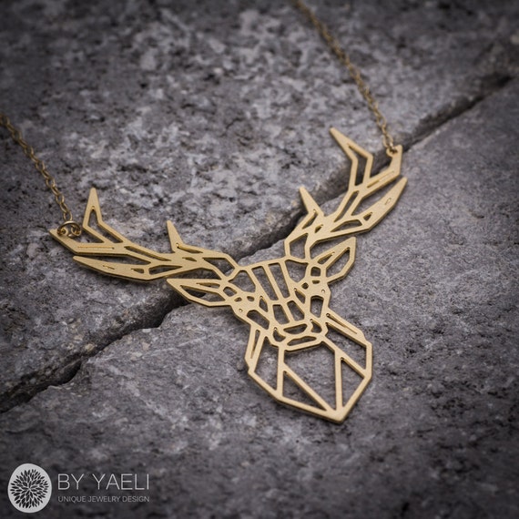Gold deer necklace origami necklace geometric necklace nature jewelry animal necklace minimalist necklace antler jewelry antler necklace by ByYaeli syndicated from https://www.etsy.com/shop/byyaeli/
