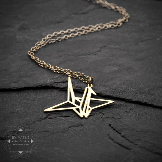 Gold origami bird necklace, minimalist geometric necklace. by ByYaeli syndicated from https://www.etsy.com/shop/byyaeli/