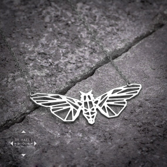 Moth necklace, geometric silver death's head moth animal jewelry. by ByYaeli syndicated from https://www.etsy.com/shop/byyaeli/