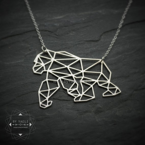 Silver origami gorilla necklace geometric necklace by ByYaeli syndicated from https://www.etsy.com/shop/byyaeli/