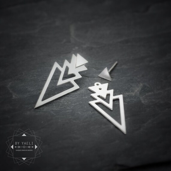 Triangle ear jacket, geometric silver triangle stud earrings. by ByYaeli syndicated from https://www.etsy.com/shop/byyaeli/