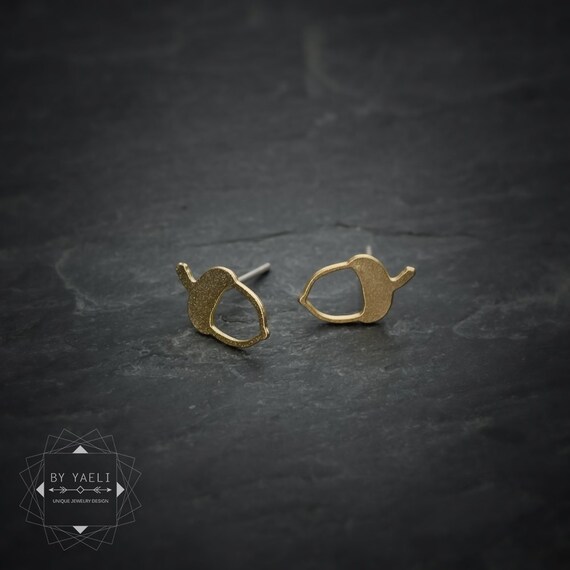 Dainty acorn stud earrings, minimalist tiny acorn post earrings, nature earrings. by ByYaeli syndicated from https://www.etsy.com/shop/byyaeli/