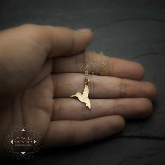 Delicate petite Hummingbird necklace, tiny gold charm necklace. by ByYaeli syndicated from https://www.etsy.com/shop/byyaeli/