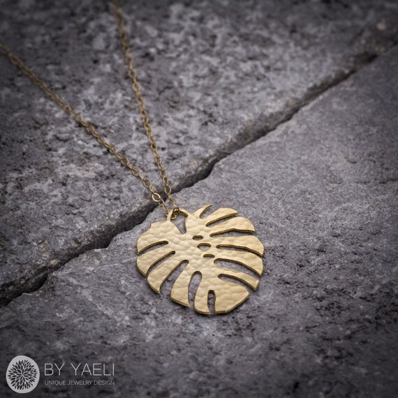 Leaf necklace, tropical nature jewelry, gold monstera necklace by ByYaeli syndicated from https://www.etsy.com/shop/byyaeli/