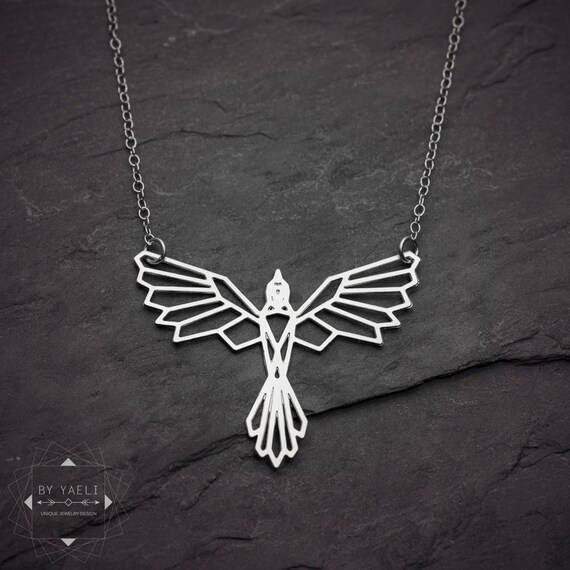 Silver phoenix necklace, origami necklace, geometric necklace, bird necklace, phoenix pendant by ByYaeli syndicated from https://www.etsy.com/shop/byyaeli/