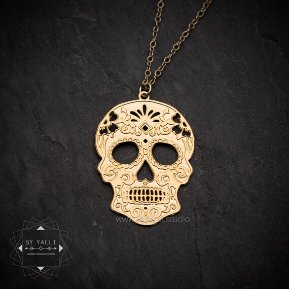 Sugar skull necklace, day of the dead Gothic jewelry. by ByYaeli syndicated from https://www.etsy.com/shop/byyaeli/