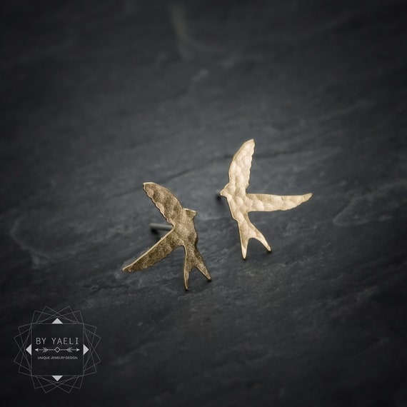Swallow earrings, minimalist gold swallow stud earrings, swallow post earrings. by ByYaeli syndicated from https://www.etsy.com/shop/byyaeli/