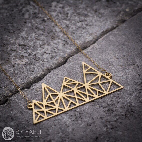 Mountain necklace geometric necklace mountain range necklace geometric mountain necklace mountain pendant mountain jewelry unique necklace by ByYaeli syndicated from https://www.etsy.com/shop/byyaeli/