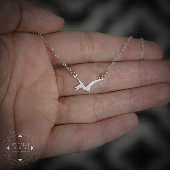 pterodactyl necklace, tiny silver necklace, dinosaur charm by ByYaeli syndicated from https://www.etsy.com/shop/byyaeli/