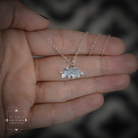 Tiny triceratops necklace, dainty silver dinosaur necklace, dinosaur charm by ByYaeli syndicated from https://www.etsy.com/shop/byyaeli/