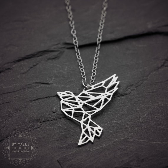 Bird necklace, geometric necklace, silver bird pendant. by ByYaeli syndicated from https://www.etsy.com/shop/byyaeli/