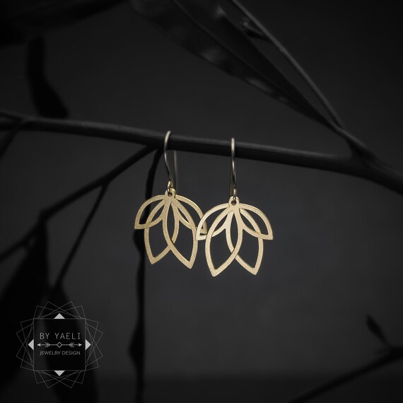 Dangle earrings, gold leaf earrings, flower earrings. by ByYaeli syndicated from https://www.etsy.com/shop/byyaeli/