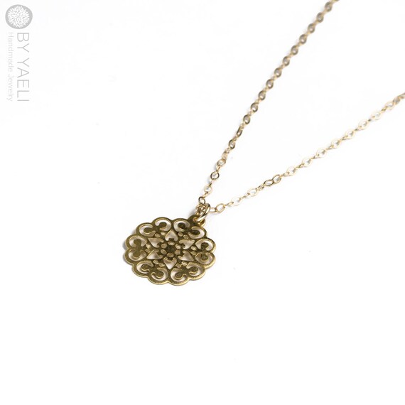 Gold necklace, geometric necklace, filigree necklace, goldfilled necklace, gold flower necklace, dainty necklace, everyday necklace. by ByYaeli syndicated from https://www.etsy.com/shop/byyaeli/