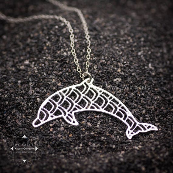 Silver dolphin necklace statement necklace best friend gift minimalist jewelry bohemian jewelry geometric necklace ocean necklace by ByYaeli syndicated from https://www.etsy.com/shop/byyaeli/